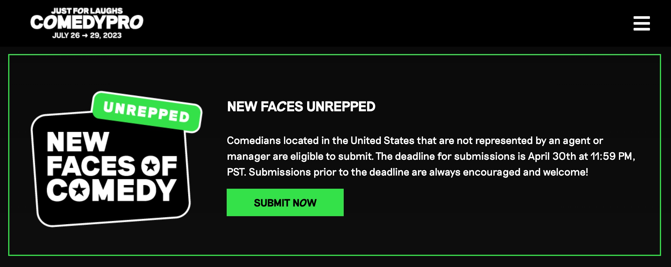 Did you know you can submit to Just For Laughs New Faces??? Well, sort of.