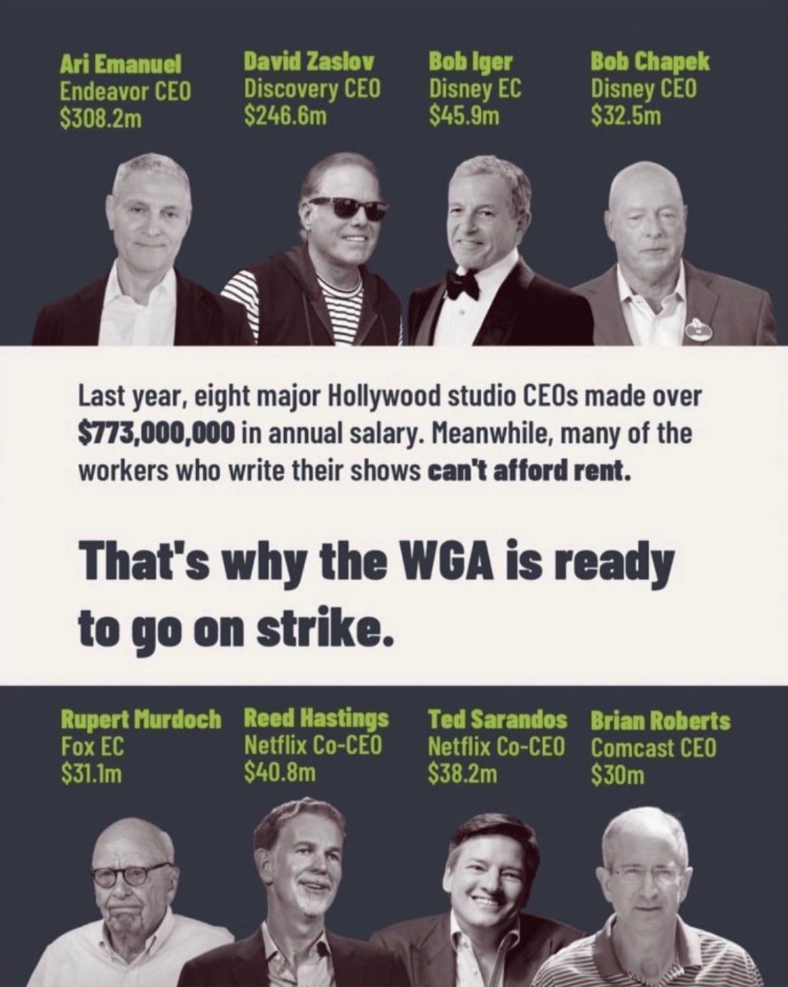 1) Something (very stupid) you’re going to see over the next weeks are people arguing that screenwriters are being unreasonable. “Times have changed”. No. Times WERE changed. By SOMEBODY. By PEOPLE, making CHOICES.
