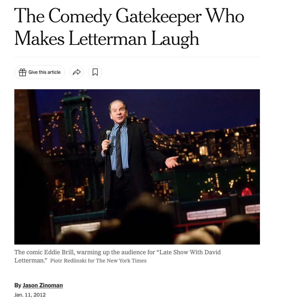That kind of like puts the onus on you even more, especially when you come into the job, on the heels of my buddy Jason Zinoman profiling Eddie Brill, a guy who I’ve known for over two decades. What was that like in in the building?