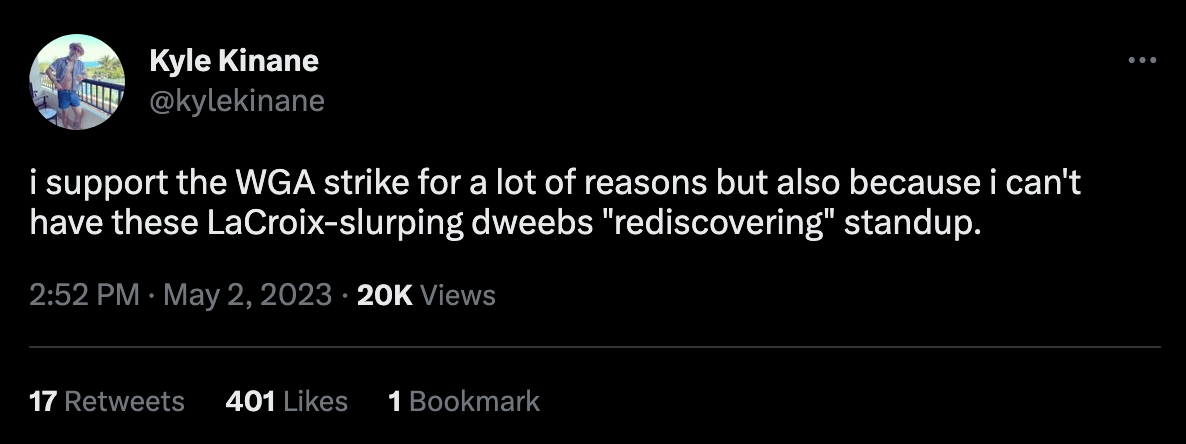 You mentioned you hope this Writers Guild strike ends soon, just so the writers don’t all go back to stand-up.