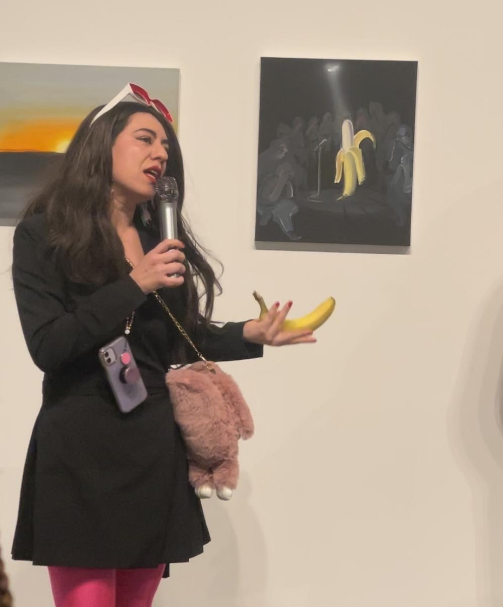 I was kind of in a fugue state. I mean, that’s the paradox of, you know, performance is that it’s the fundamental tension I have between being a writer and being a performer which is, you know, the former is sort of predicated on retaining memories and sensations long enough to record them. But the latter is, as the performer when I really feel like I succeed, or at least I’m very present, it actually makes it almost impossible to really remember what I did. I mean, it was recorded. I remember feeling very, very calm and very flat, like I had just gone through the eye of a storm. But I did feel a lot of, yeah, it was embarrassing but my embarrassment came more from a) the fact that I think a lot of there were some people who didn’t really know that it was a character so that I was embarrassed thinking that this is what people think I really am. And then embarrassed that there were some moments when I really did — a lot of it was improvised, but a lot of it was just taken from other parts of my act and things that I had written so there were a few moments where I really did just kind of blank out because it was just such an intense, strange thing to do. And so I got embarrassed that I brain farted but then also I was able to use that for the character. And at the end of the day, it was hard to know how I felt because it was such a weird. There wasn’t a whole lot of precedent for what I was doing. So like who’s to say what it’s supposed to look like when it goes “well,” they literally, I’m giving a walkthrough I’m giving a tour basically of a real art exhibit. Not just as a comedian, which has been done before but as a character, and the character actually doesn’t get what the work is about, but me as a critic, does on some level and has to filter that through this character who’s “stupid.” And then also at the end of the day, it needs to be funny because it was actually the artist’s idea. She had the idea of allowing a comedian to do a walkthrough of the show. And then I pitched it this way, because if you had like a traditional or conventional comic doing that as themselves, it would have been a different thing. But because I’m an actual critic, if I had tried to do that walkthrough as myself and being funny, it would just not be as — it would be like a little bit clever and haha, but I just felt like to really get at the comedy that I think she was looking for. It’s almost I had to take on this persona of someone who doesn’t really get the work, right.